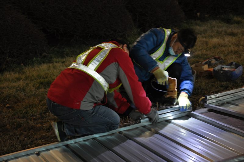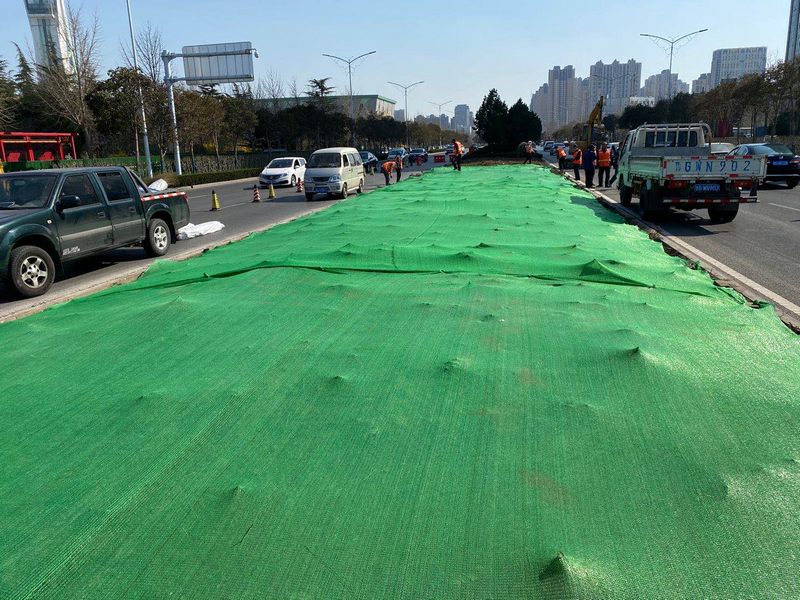 ▲文明施工,鋪設(shè)綠網(wǎng)
