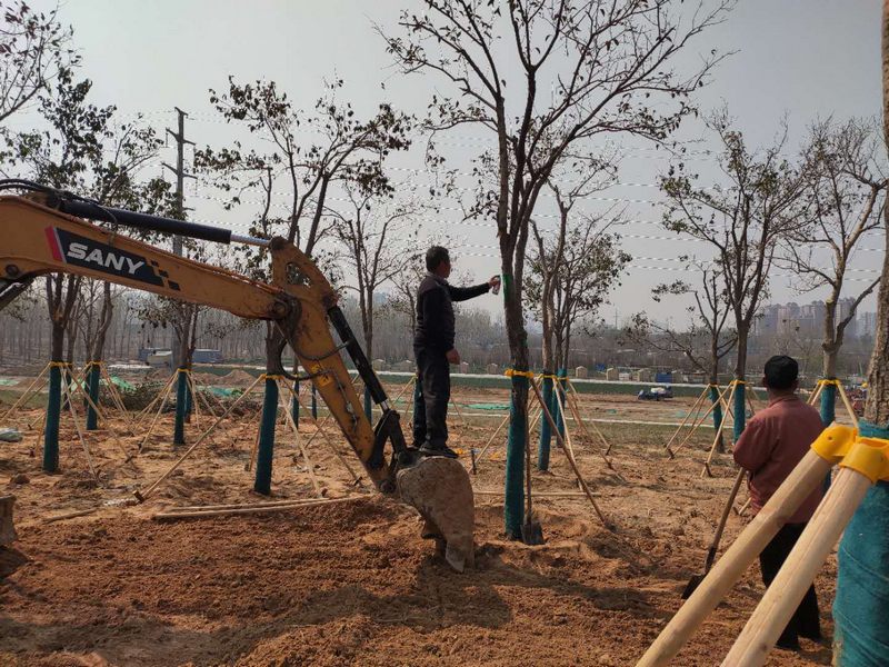 為實施標(biāo)準(zhǔn)化、精細化施工,加快施工進度,集團各子公司多次碰頭討論,結(jié)合疫情期間工期短、任務(wù)重等因素,研究苗木遷移技術(shù)重點難點,制定切實有效的遷移施工方案,保障施工人員安全。施工中,公司職工目標(biāo)一致、各司其職,各公司負責(zé)人及骨干力量包靠現(xiàn)場,嚴(yán)格按照規(guī)范要求,設(shè)置施工圍擋、施工警示牌,提前進行苗木分類、嚴(yán)格按照標(biāo)準(zhǔn)起苗運送,確保了施工和綠植苗木的安全。