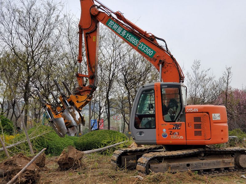 ▲啟用挖樹機,節(jié)約成本,省時省力,加快施工進度