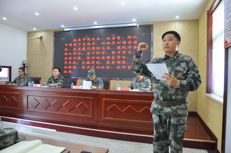 ▲集團黨委副書記宮君帶領(lǐng)全體民兵面對國旗莊嚴宣誓