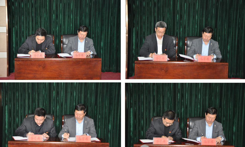 ▲黨委副書記、總經(jīng)理單云華與各子公司負(fù)責(zé)人簽訂經(jīng)營業(yè)績目標(biāo)責(zé)任書和安全生產(chǎn)責(zé)任書