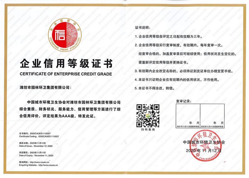 以誠信謀發(fā)展 用擔當譜華章——濰坊市園林環(huán)衛(wèi)集團榮獲環(huán)衛(wèi)行業(yè)信用評價