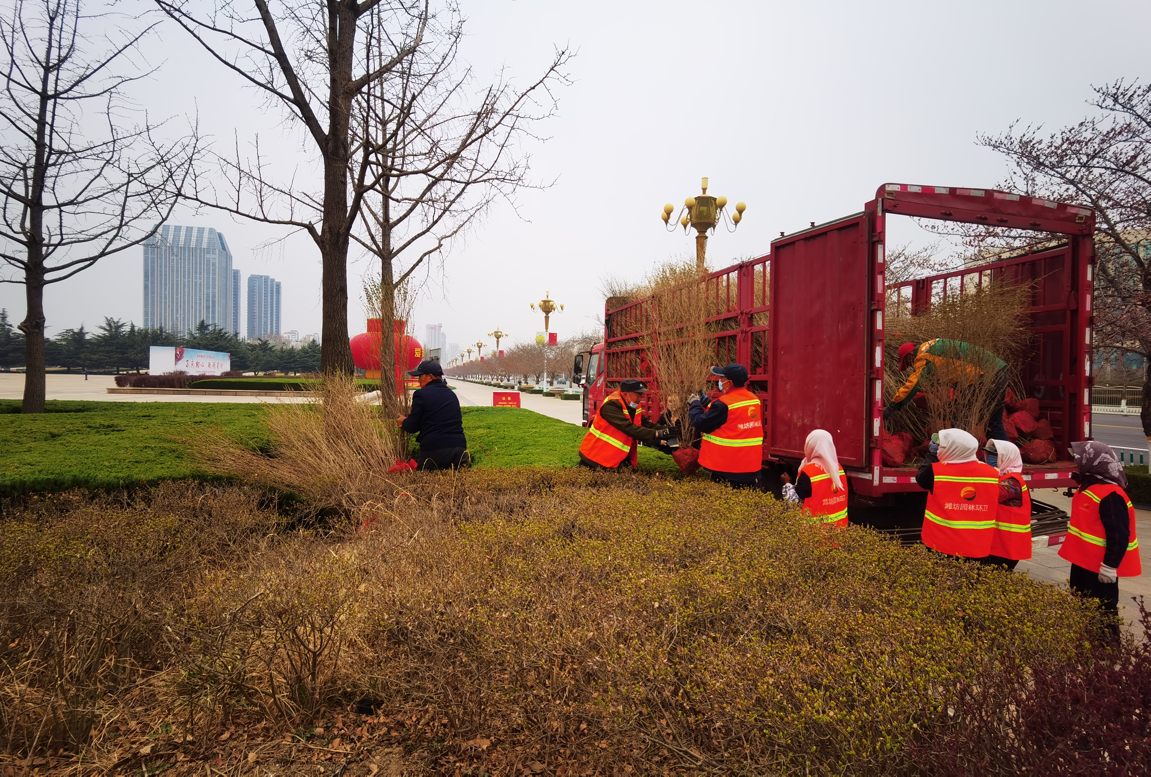 又是一年?duì)€漫春光,濰坊將會迎來一年一度的最美櫻花季,作為濰坊賞櫻“網(wǎng)紅”打卡地的人民廣場,每年都會吸引大量市民前來賞花踏青。3月18日,根據(jù)市園林環(huán)衛(wèi)服務(wù)中心人民廣場服務(wù)所安排部署,市園林環(huán)衛(wèi)集團(tuán)白浪河公司緊抓春季綠化補(bǔ)植的有利時(shí)機(jī),開展了人民廣場苗木補(bǔ)植工作,進(jìn)一步提升城市綠化景觀。
